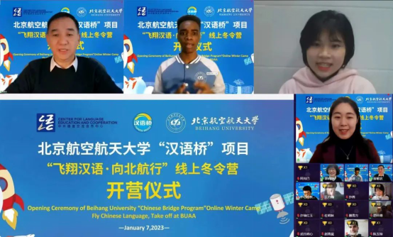 开营仪式上,国际合作部部长翁敬农表示,希望各位学员能积极参与到课程直播、文化体验、互动的各个环节,学有所获,让学习之旅充满欢乐;并诚挚邀约来自世界各地的学员们,在不久的将来留学北航,点亮自己心中的梦想。国际合作部汉语培训中心主任郭莉萍介绍了项目特色、课程安排及授课形式,还就学员们关心的学习问题进行了指导说明,并衷心希望各位学员通过汉语桥项目能留下美好的回忆,学有所乐、学有所得、学有所成。
